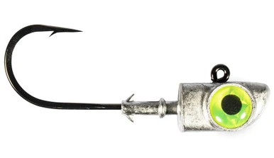 Featuring everything worth asking for in a heavy-duty jig head, the Z-Man DieZel Eye Jigheads are built to handle the hard fighting predators notorious for causing your tackle to fail. Built around custom heavy-duty tri-forged needle point hooks, the DeiZel Eye is the jig head to reach for when hook strength is key. The oversized 6/0 or 8/0 hook sizing makes them ideal for pairing with larger soft plastics like 5in+ paddle tails and 7in+ fluke and eel style baits. Beneath the head are two conical bait keeper barbs and a retainer collar for dressing up soft plastics presentations with skirts. The hallmark 3D eye design that’s available in three different colors gives the presentation a lifelike appeal that stands out from afar.